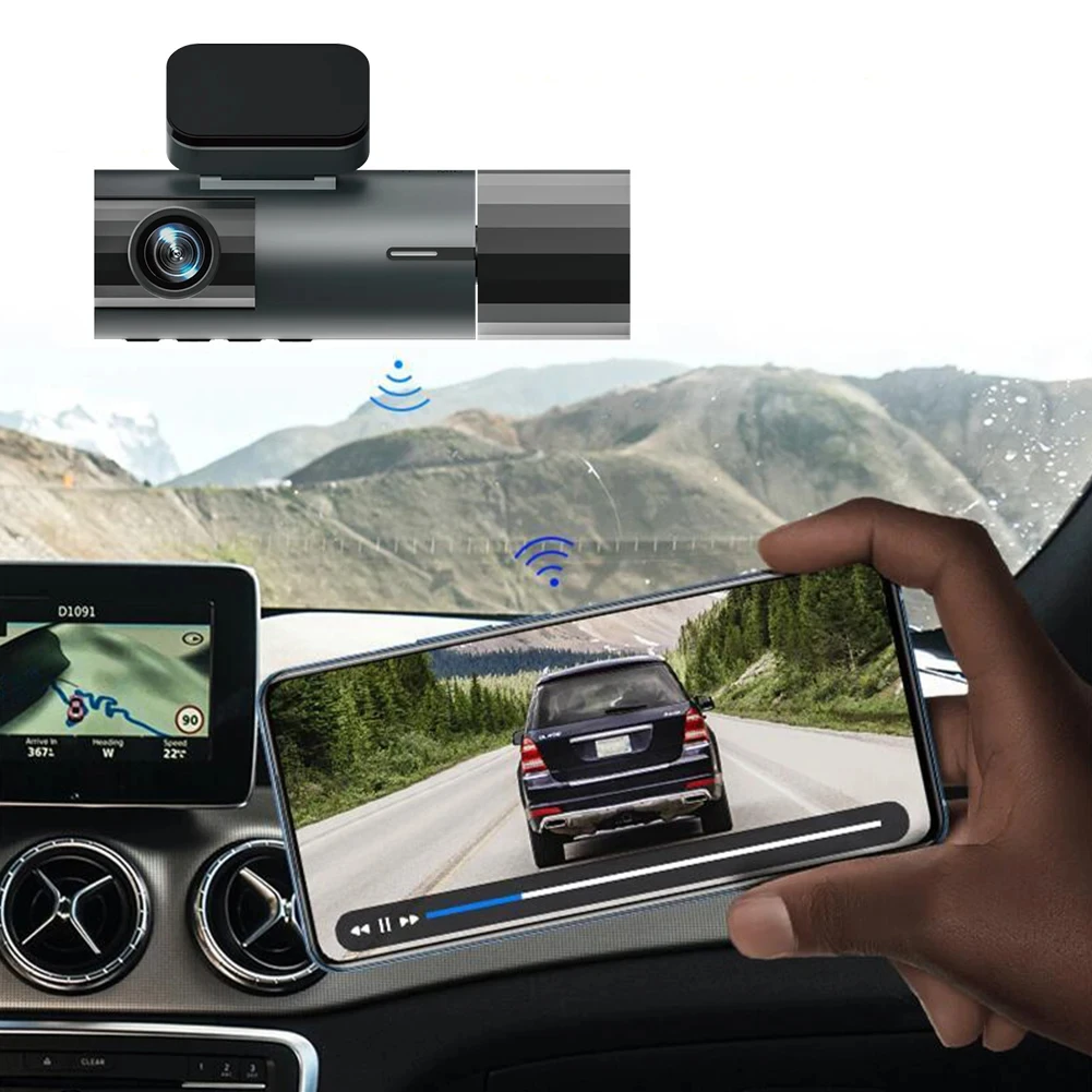 داش كاميرا كاميرا سيارة ثلاثية العدسات بدقة مع اتصال واي فاي مزودة بتقنية الأشعة تحت الحمراء للرؤية الليلية وكشف الحركة لتسجيل فيديو عالي الجودة على مدار الساعة وحماية سيارتك بأحدث التقنيات.