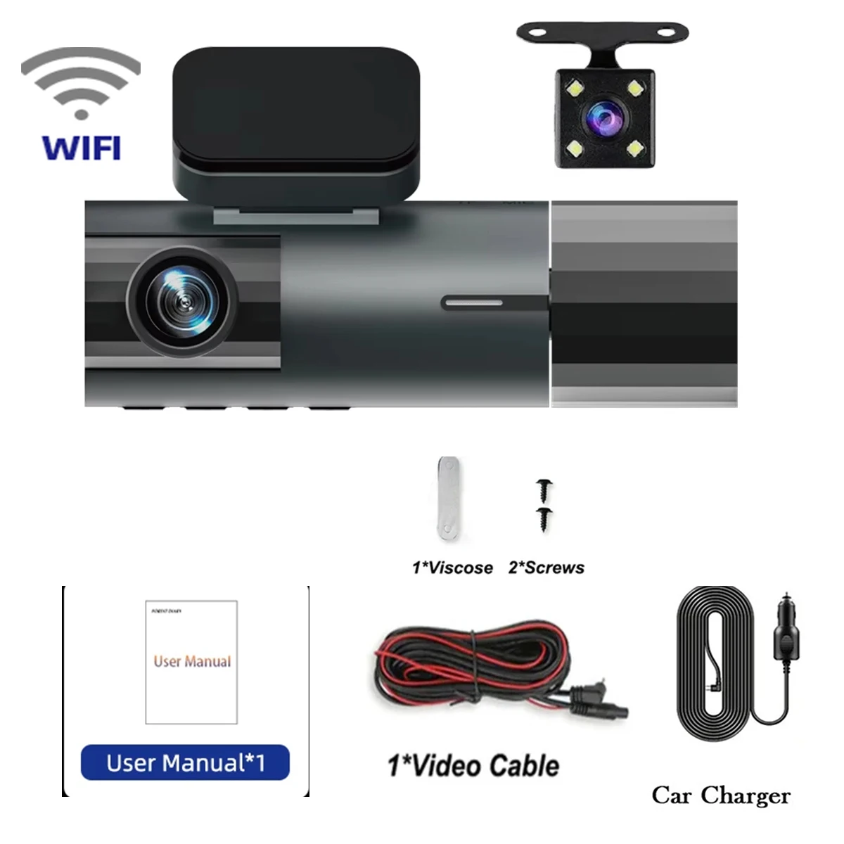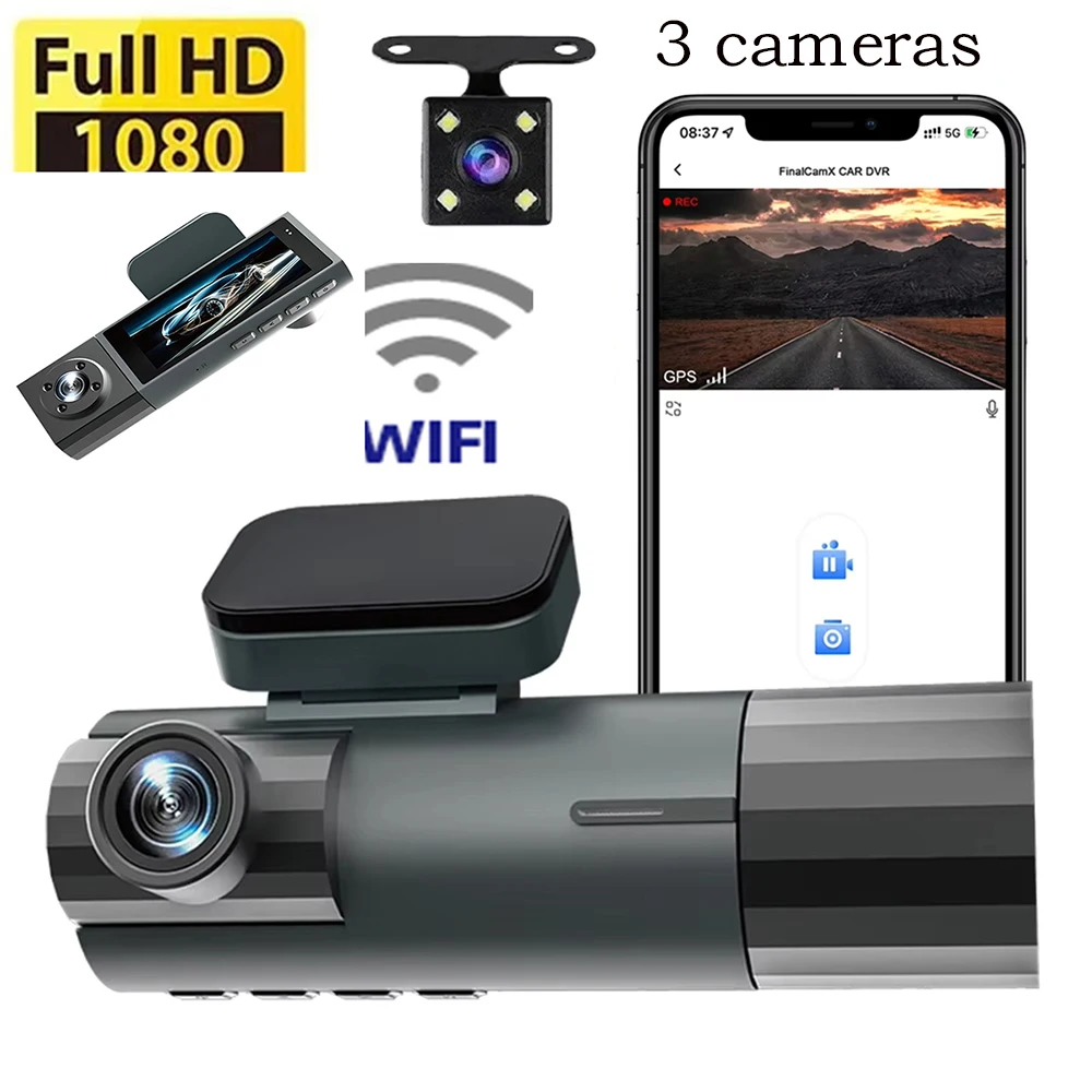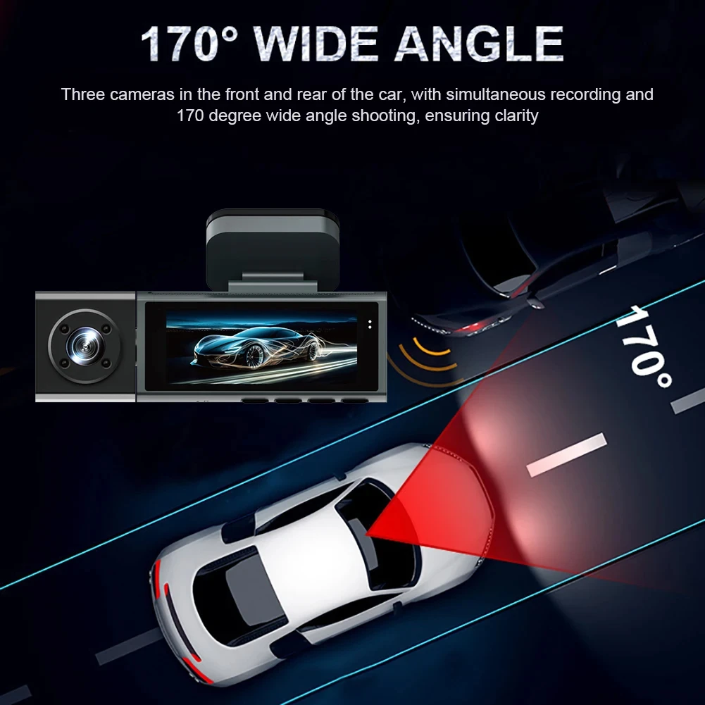 اسم المنتج :ثلاثة كاميرات 1080P WiFi Dash Cam HD جهاز تسجيل فيديو رقمي للسيارات مع الأشعة تحت الحمراء للرؤية الليلية 3.16 بوصة IPS شاشة كاميرا فيديو للسيارة كشف الحركة ملحقات السيارة